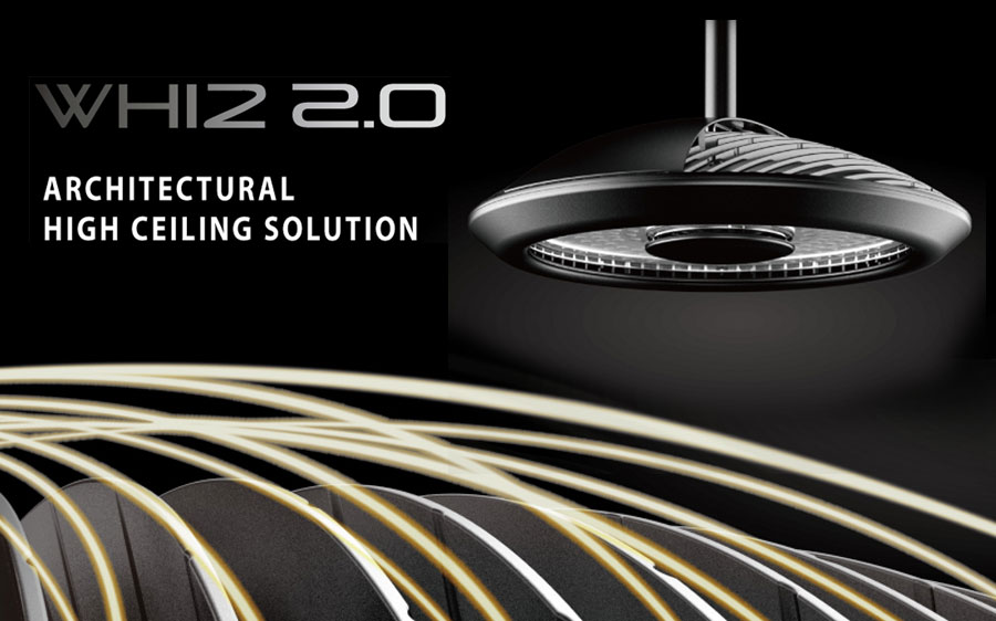 Whiz 2.0 is an Architectural High Ceiling Solution that redefines high ceiling space design. This premium fixture is suitable for mounting heights of 30ft and above and deliver high performance as well as clean aesthetics.
