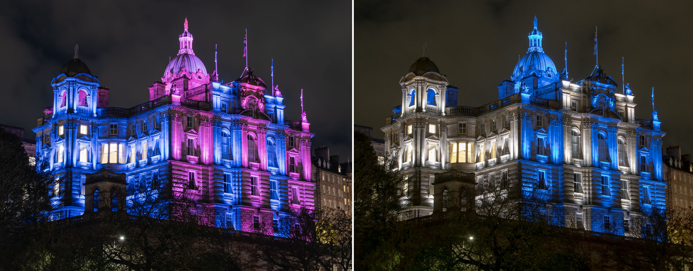Our Scottish HQ truly stands out for a striking, stunning effect that adds to the prestige and renowned location and history of the area. We were particularly pleased to light up The Mound in rainbow colours in support of Pride celebrations, and to show our solidarity with Ukraine on Ukrainian Day of Independence.”