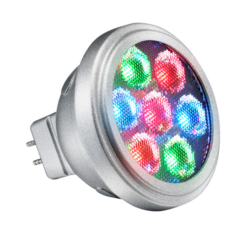 A standard IP65 GU10 was chosen and the colorkinetics MR2 RGB 24v wide beam lamp fitted. They are located around the perimeter of the room and with upto 14 power from a power supply within the ceiling void and individually addressable an d controlled by a simple DMX controller and keypad within the nurses station.