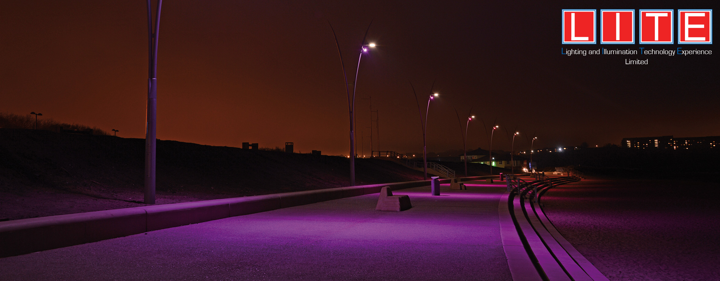 The colour-changing lighting effects are provided by ColorBlast fittings attached to the lighting columns.