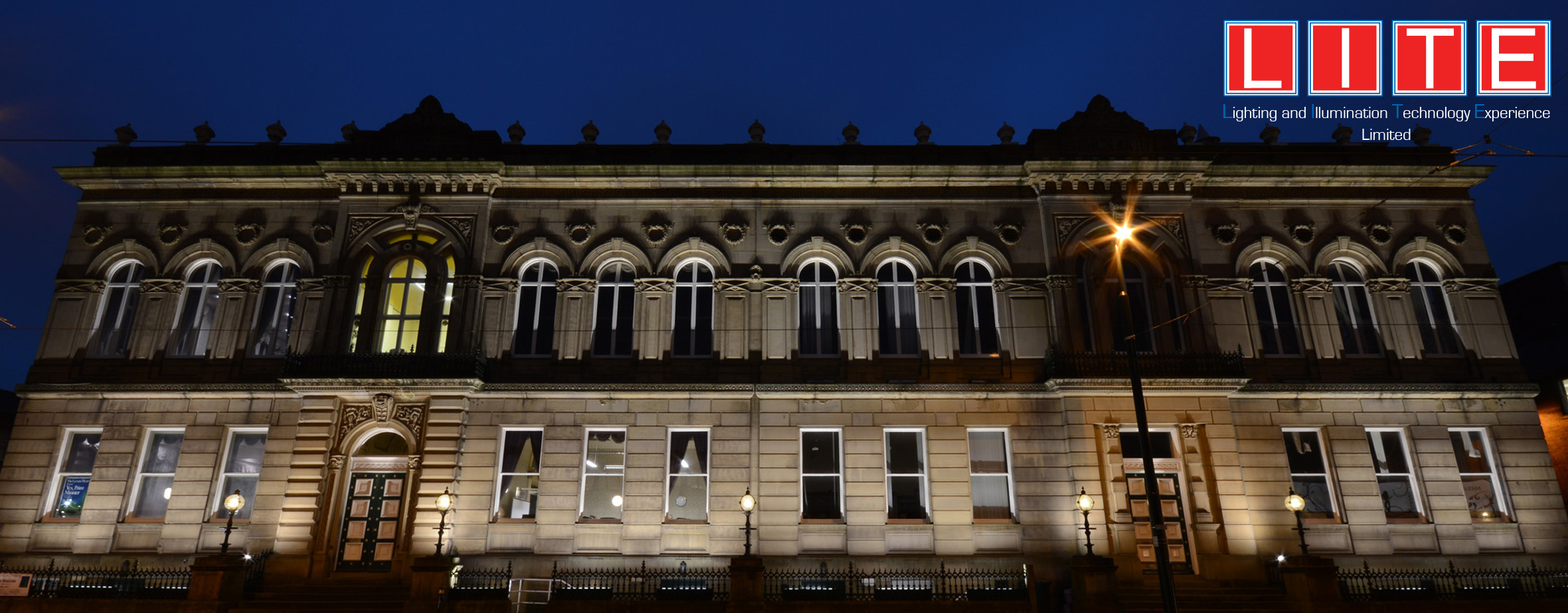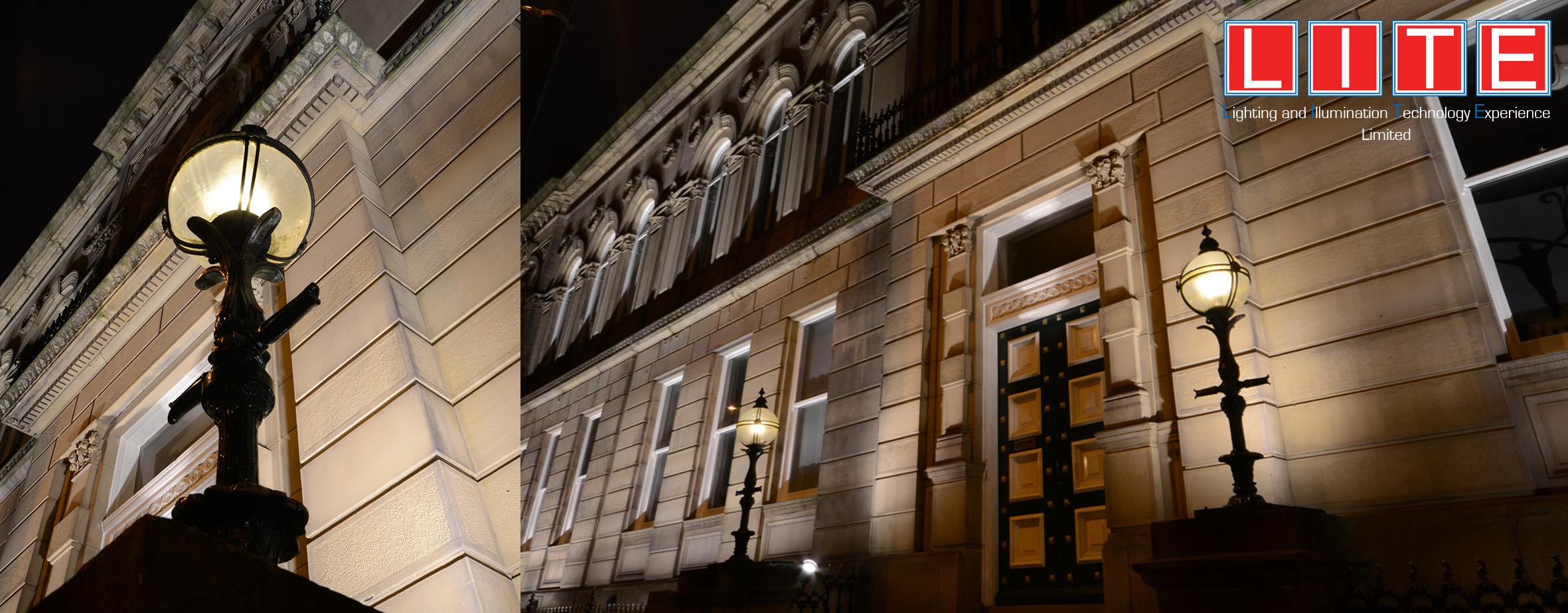 The Lyceum's front façade was subtly illuminated using iW Graze and iW Burst LED energy saving intelligent White light to enhance the stone dressing.