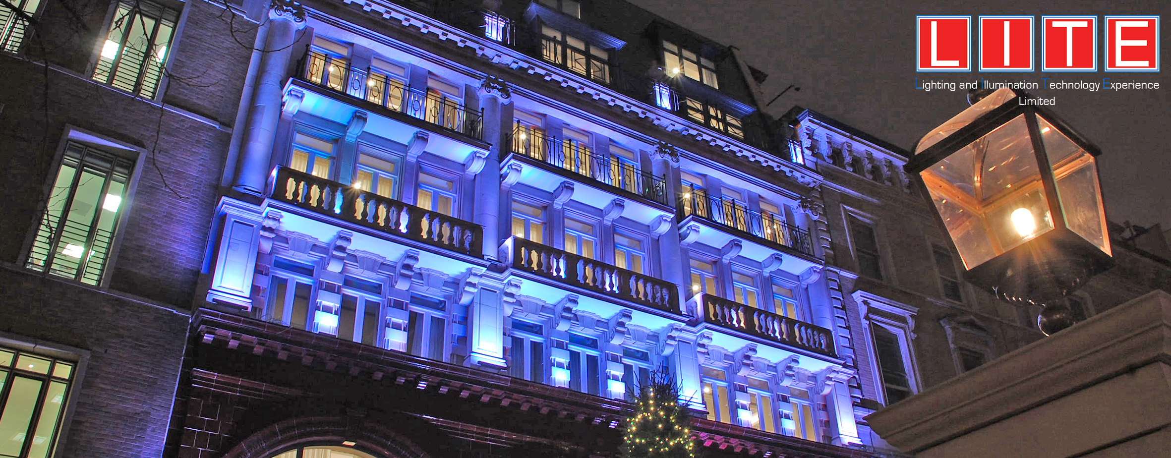 Lorraine Calcott of It Does Lighting was hired to create a lighting scheme for both the exteriors and interiors, using Facade Color Changing fixtures to light the posh building’s outdoor façade.