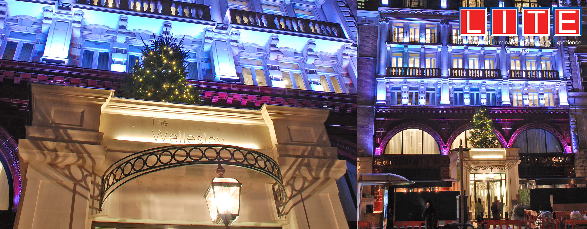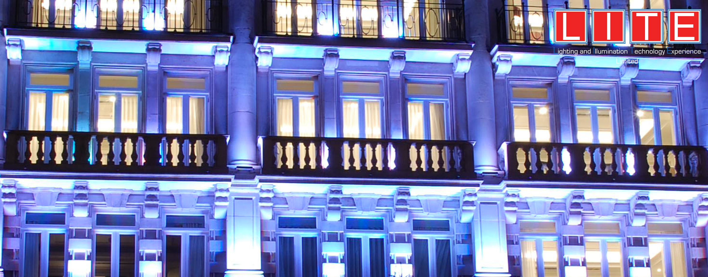 “The façade needed to have the option of color-change for special occasions and white for normal use,” says Calcott. “The luminaires were installed on ledges on the small balconies that ran along the front of the hotel, at roof level to highlight the height of the building, and in-between the windows with a tight beam angle to contain the light and to draw the eye upwards when viewing the façade.”