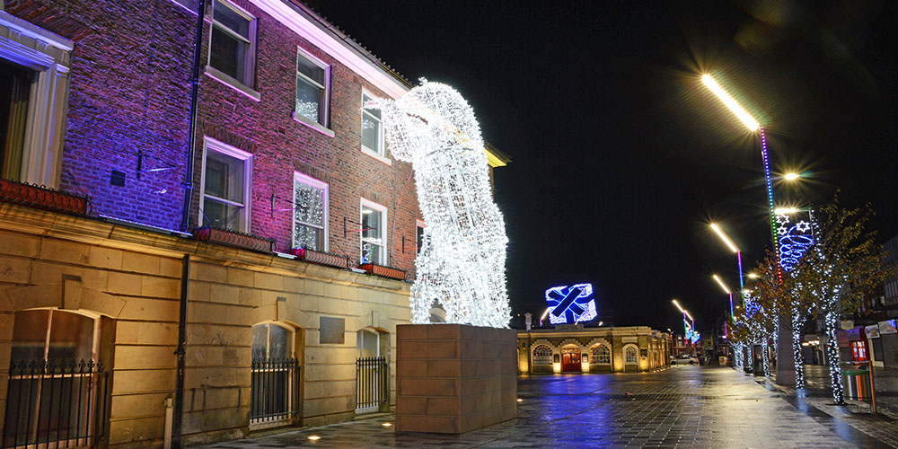 LITE provided the relevant expertise and track record to articulate this vision and fabricate the bespoke features as part of the towns four week ‘Stockton Sparkles’ festival. LITE’s communication is excellent and the project was delivered on time and to a high standard despite having to work to quite a tight deadline. LITE provided visualisations to help with the approval process and provided assistance on site throughout the installation period.